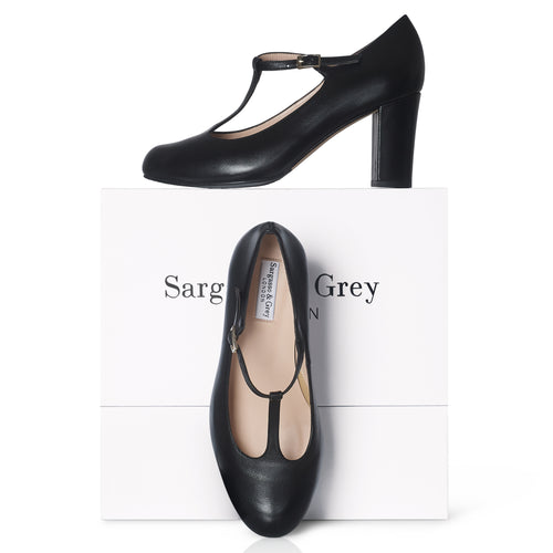 Lorna Extra Wide T-Bar Pumps - Black Leather
