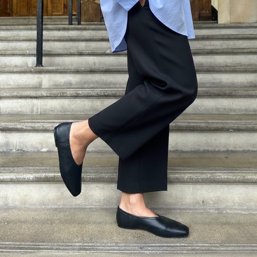 Crafted from buttery soft black leather, the Anika features a contemporary square-tapered toe and a high-cut vamp that provides a sleek, glove-like fit. The minimalist silhouette is punctuated by delicate side-stitching, offering a refined aesthetic that transitions seamlessly from a morning at the gallery to an evening dinner.