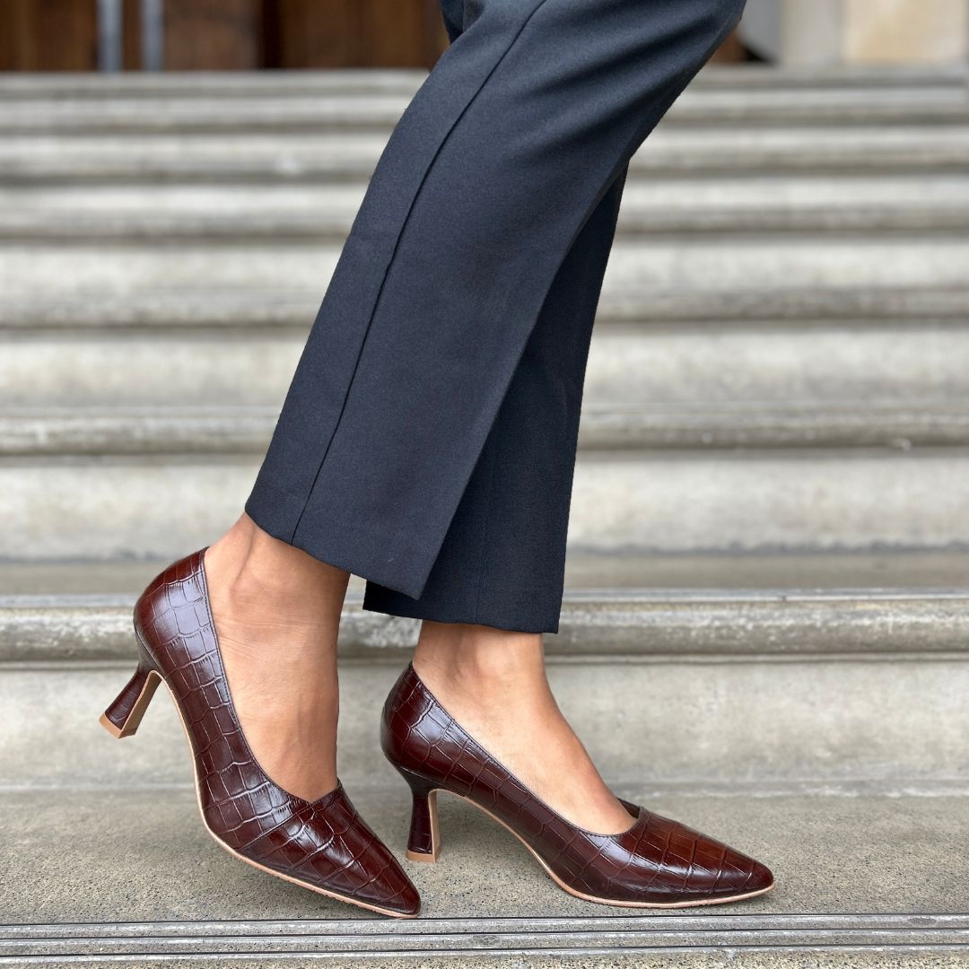 Eleanor Wide Width Pumps - Brown Mock-Croc