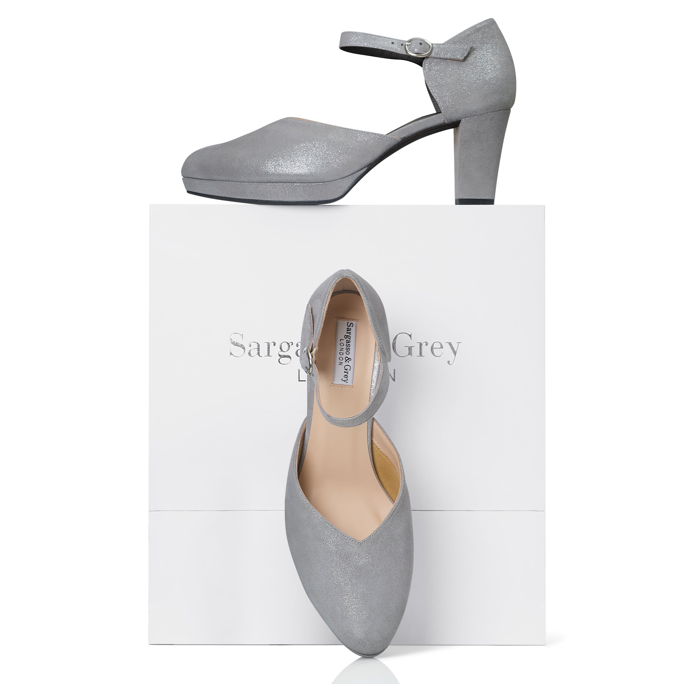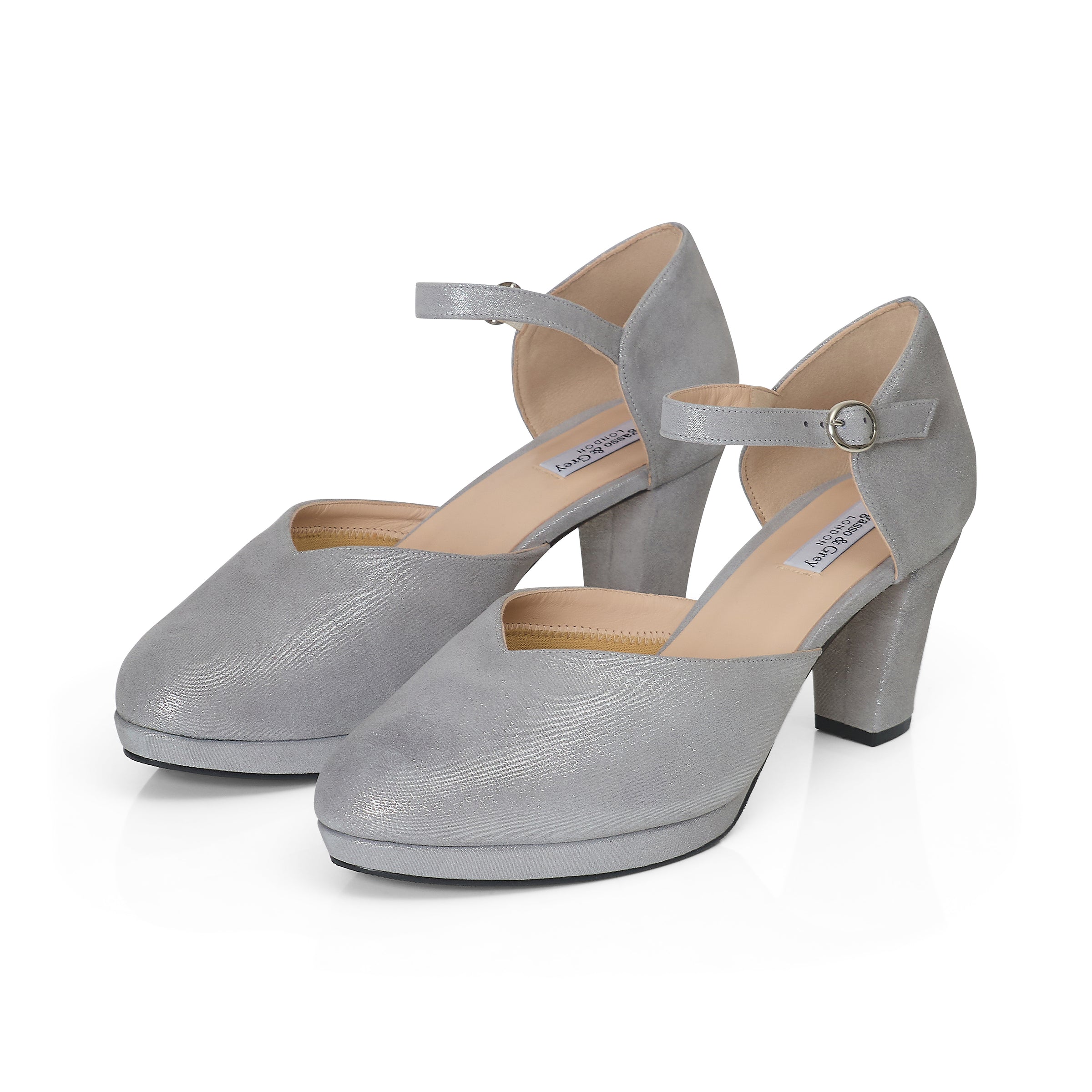 Mika Extra Wide Width Platform Heels - Silver Glitter Suede