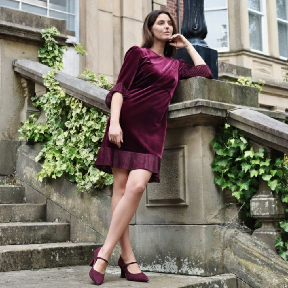 Elsa is an elegant, wide-width pump in a timeless design. It is the perfect shoe for a special occasion or important event. Made from soft suede, with a wider width toe box, memory foam padded insoles and a slim buckle strap to adjust for the perfect fit, Elsa will ensure your feet feel comfortable all day long.